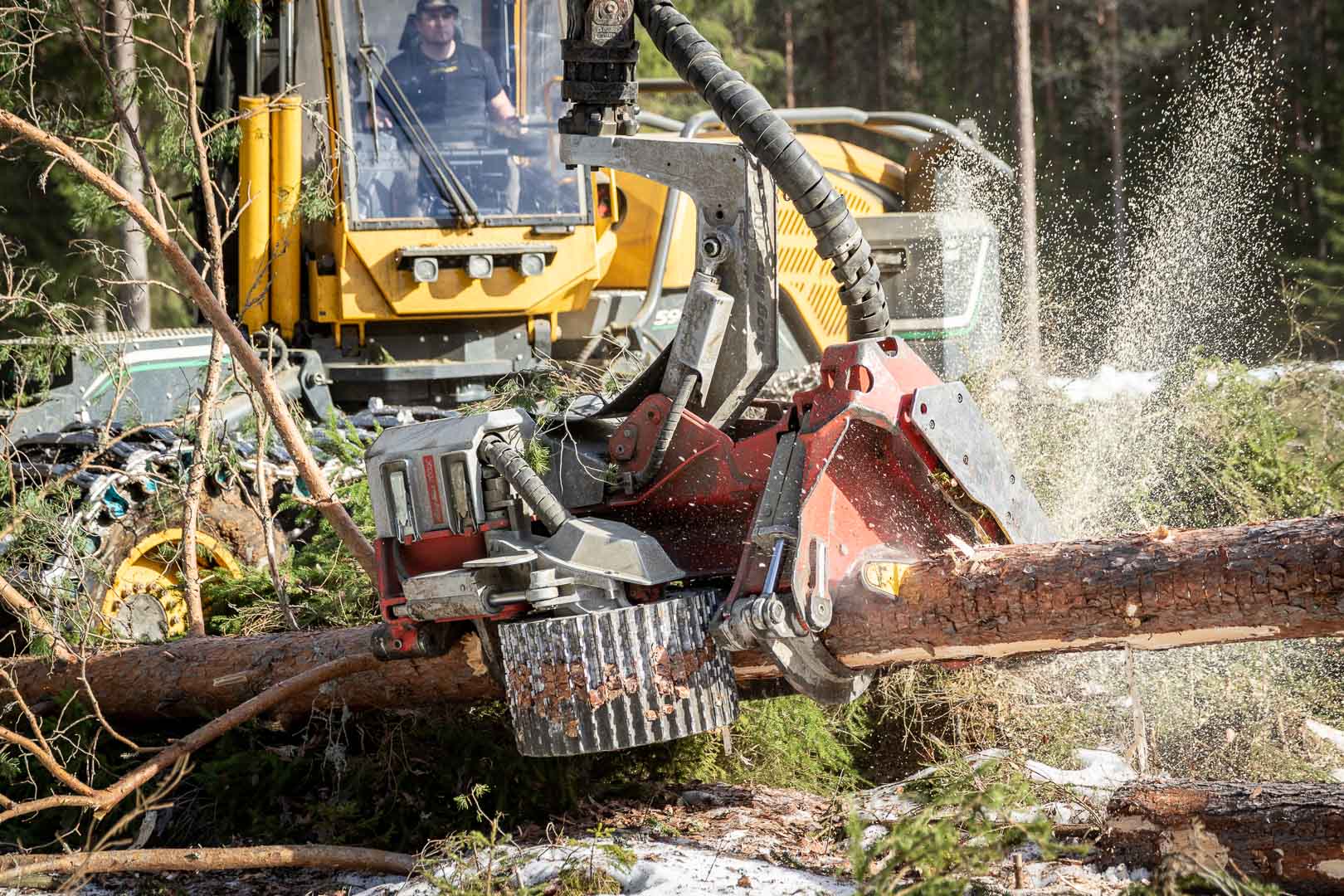 Log Max 7000C combines high traction with fast feed speed and is one of our most popular heads. The traction and speed of the head are automatically adjusted depending on the size of the trees, which brings smooth log feeding and a good driving experience.
